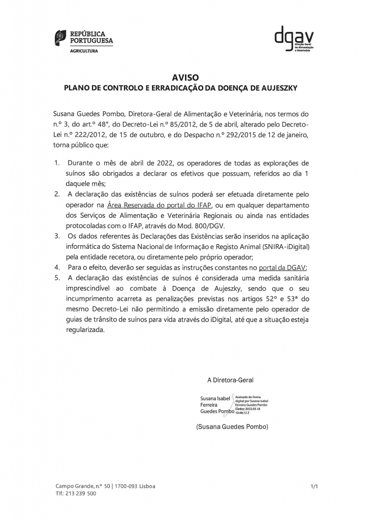 Aviso DGAV - Plano de Controlo e...