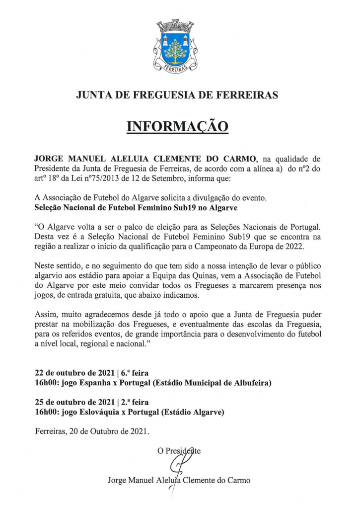 Junta de Freguesia de Ferreiras entrega lembranças...