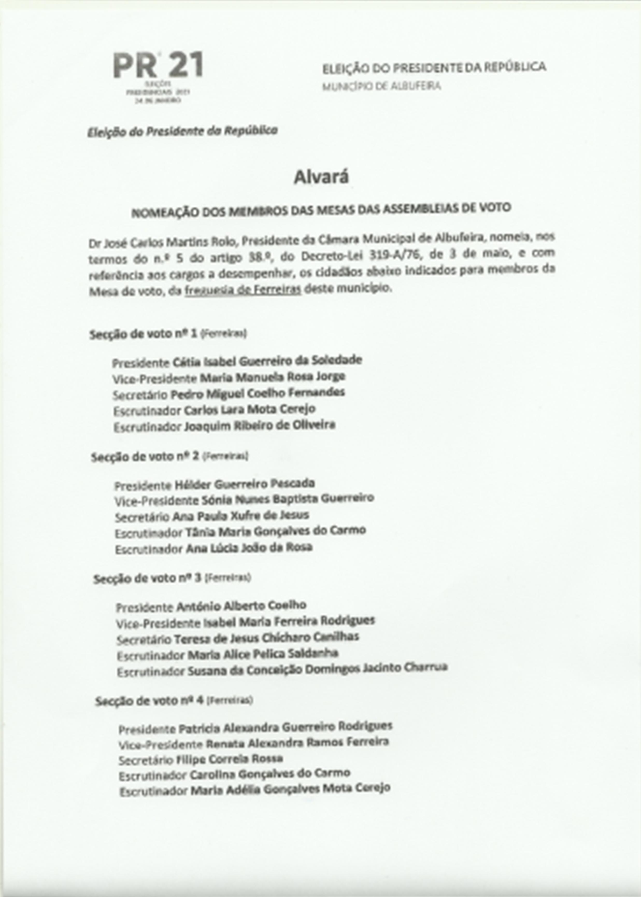 Alvará CM Albufeira - Nomeação dos Membros...
