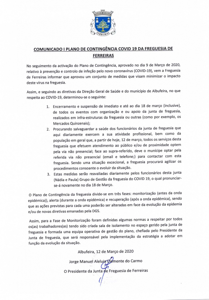 Informação - Plano de Contingência COVID-19 da...