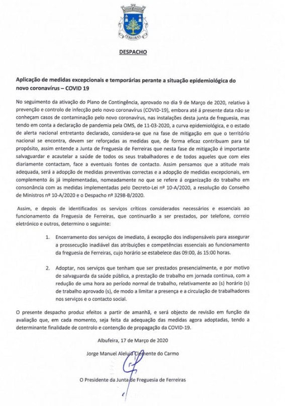 Despacho - Aplicação das medidas excecionais e...