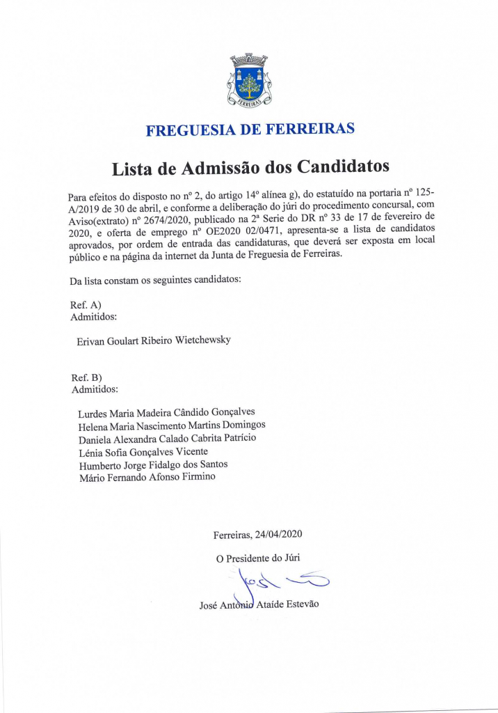 Procedimento Concursal - Lista de Admissão de...