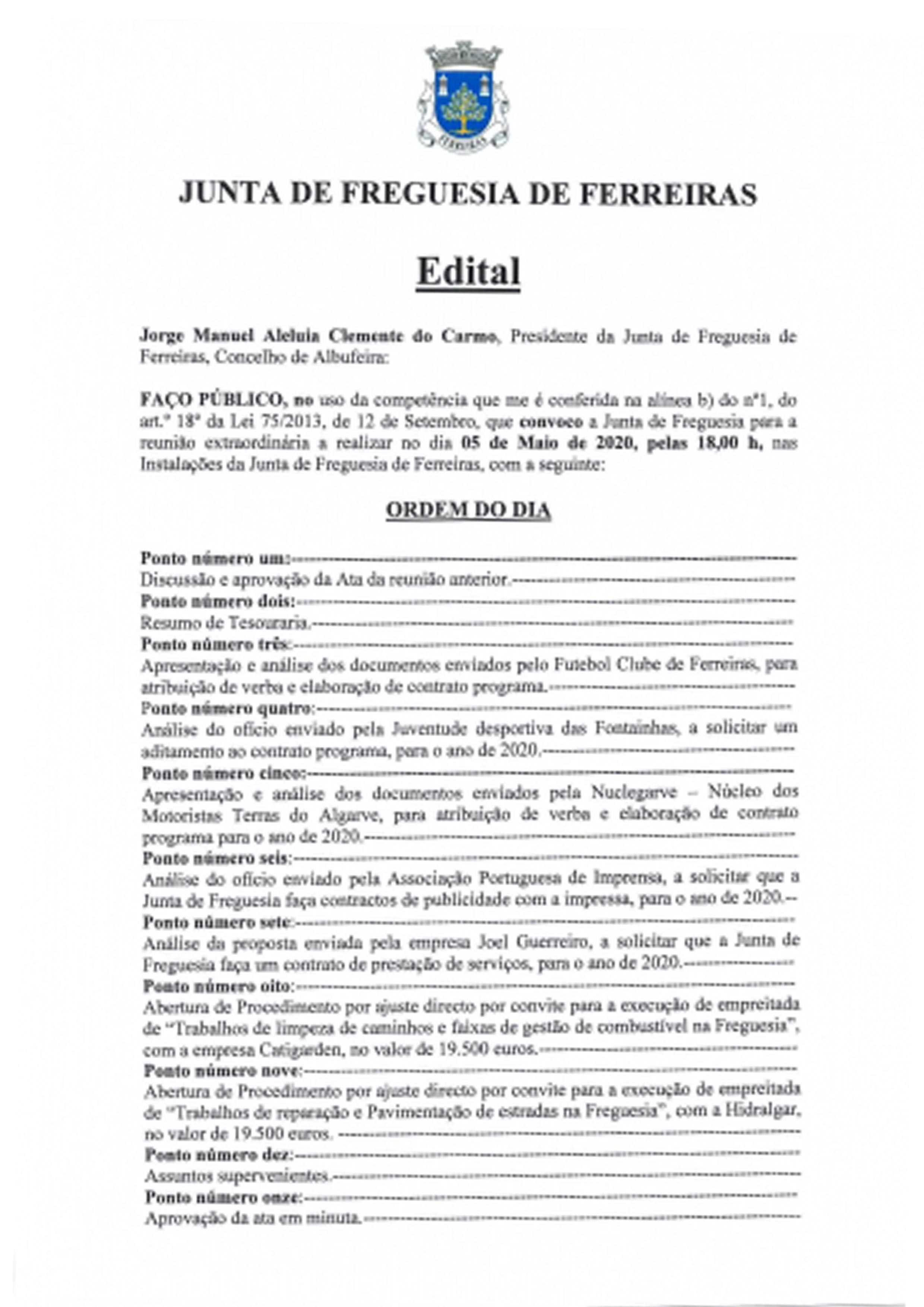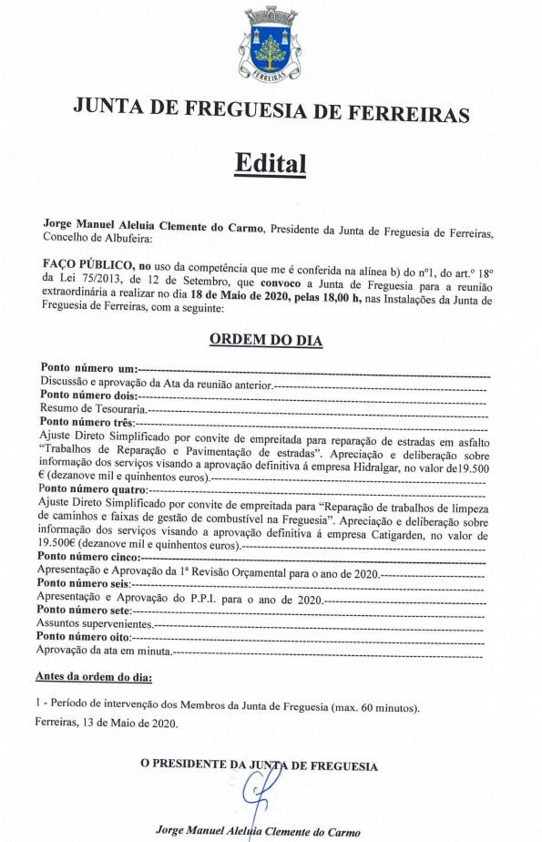 Edital - Reunião Extraordinária a 18 de...