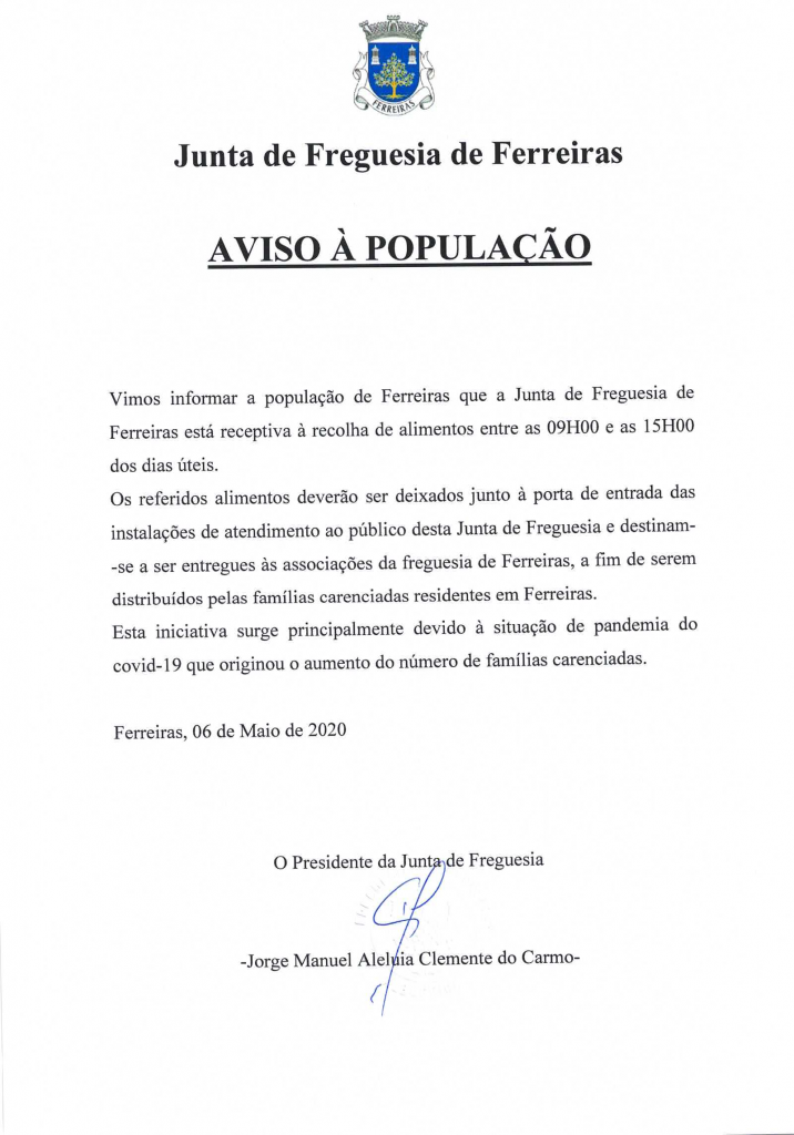 Aviso à População - Recolha de Alimentos